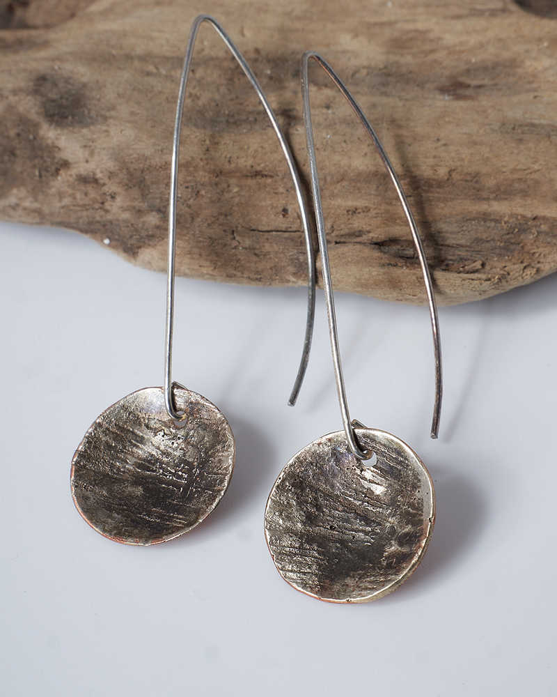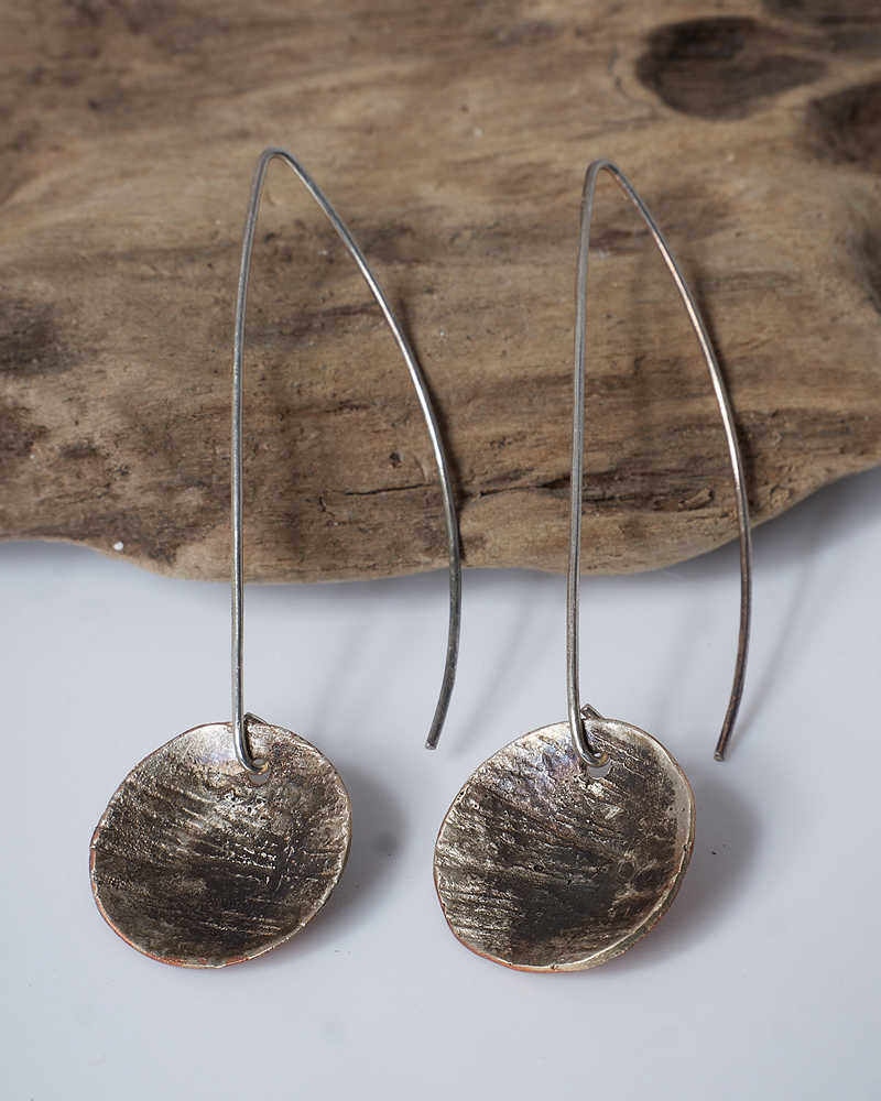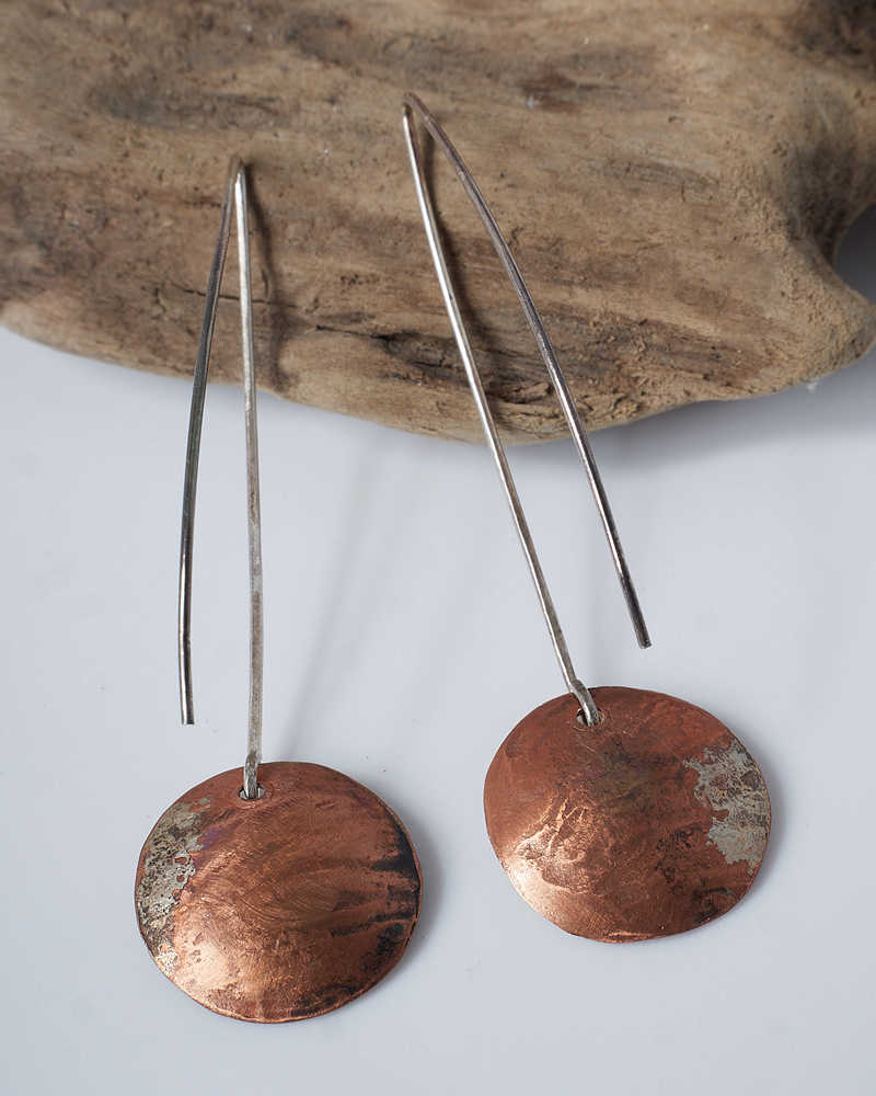 - Rustic Copper and Silver Earrings Suspended on long ear wires made of pure copper and silver. Hand-textured copper disc earrings compliment any outfit or occasion.