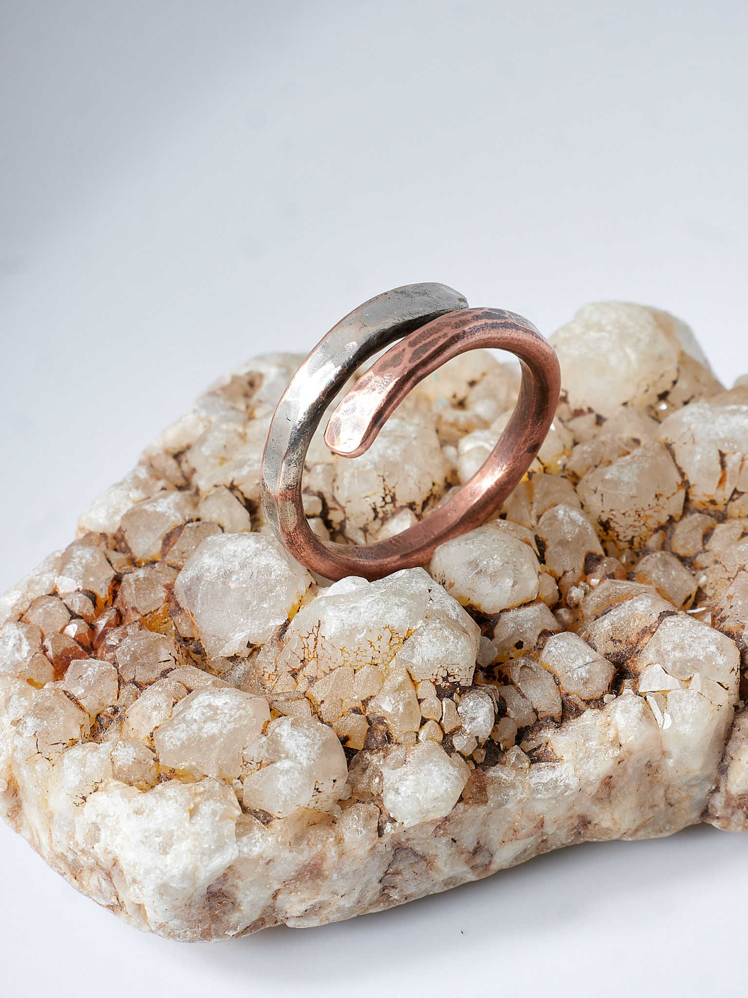 A handcrafted ring made by hand from pure copper and silver. Hand formed and hammered.