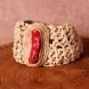 is made of crocheted linen cord and an opalescent coral centerpiece. Fastened with a stainless steel clasp.