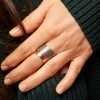 For each of our copper rings, I include a small cleaning cloth so that you can polish up your ring when it begins to darken naturally. The inside of these rings are protected with a metal varnish to prevent the natural copper from staining the skin. Note: If you do not wish for the inside of your ring to be varnished, please let me know in the comments field when you submit your purchase.