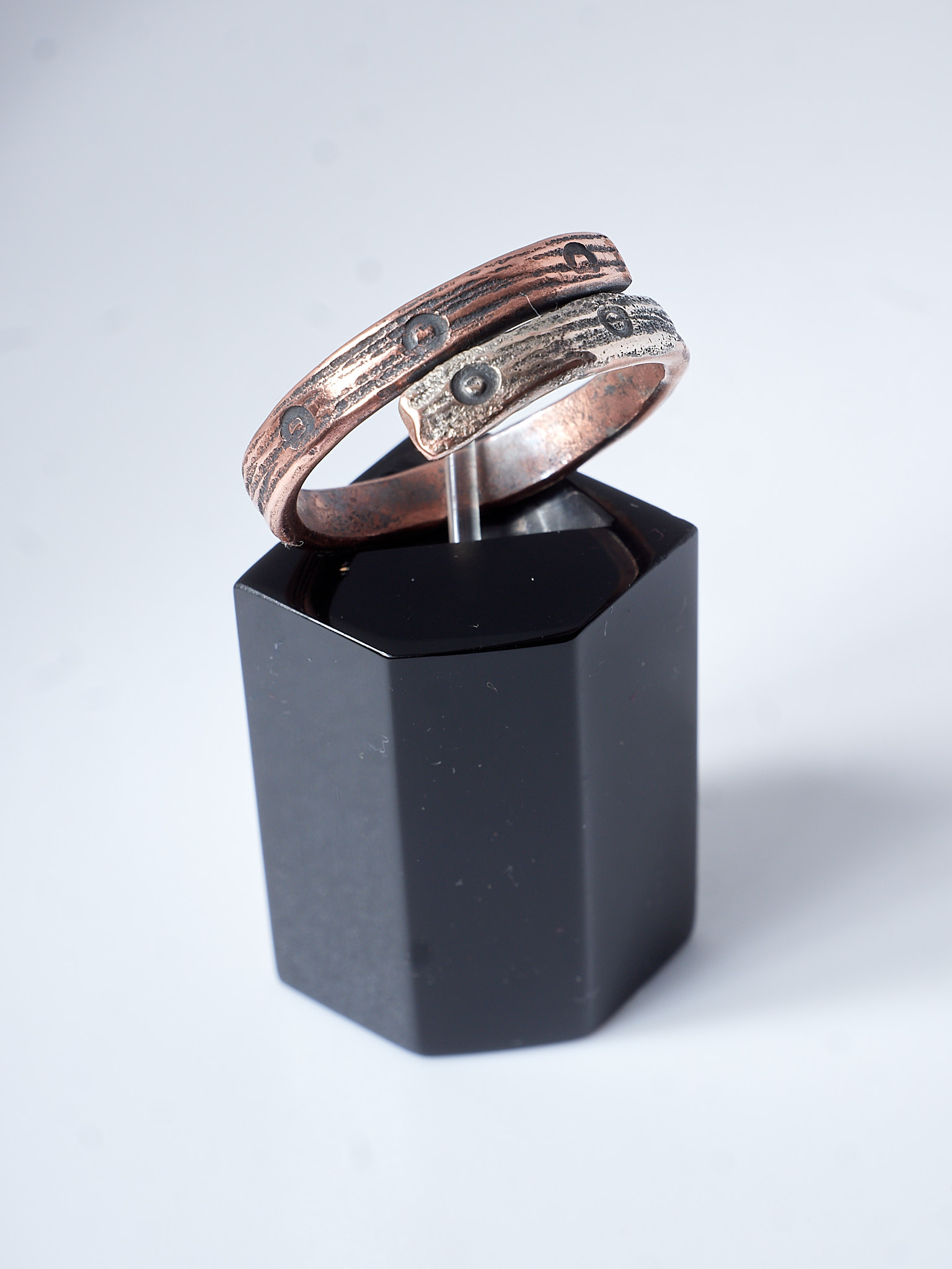 Handmade Rustic Wood Copper-Silver Solid Band Ring II