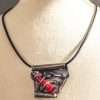 The ‘In the Depths of the Sea’ necklace pendant is completely hand-made using a metaplastic technique. Red coral is enveloped by copper wire like a treasure in the depths of the sea. The plate was intentionally formed into an asymmetrical shape. The wire and soldered elements give the pendant depth that holds the coral and pearl features. The finishing touches on this pendant were created using nickel and lead-free tin. The ‘In the Depths of the Sea’ pendant is patinated and brushed to add an antique feel and hangs on a leather cord finished off with a stainless steel clasp.