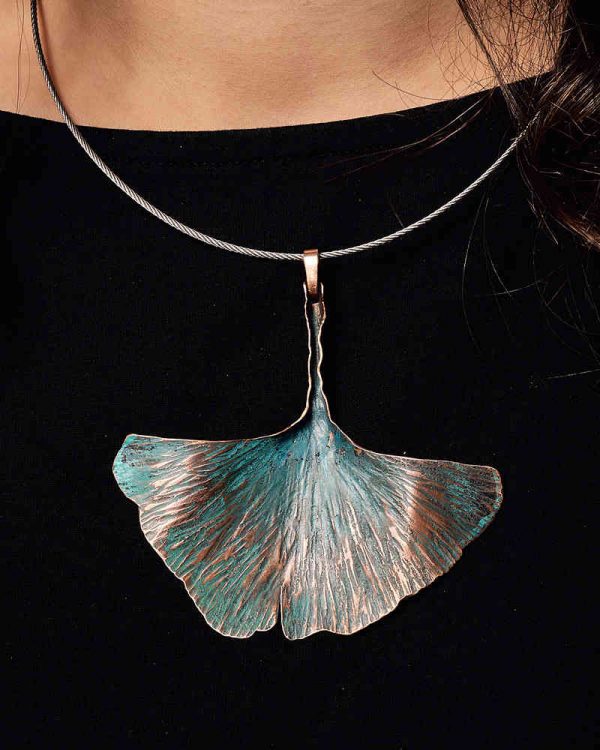 Our beautiful and unique Ginkgo Leaf Necklace is lightweight and very comfortable. Hand-cut and shaped to emphasise natural beauty. The Ginkgo Necklace is hand-crafted from pure copper.Â