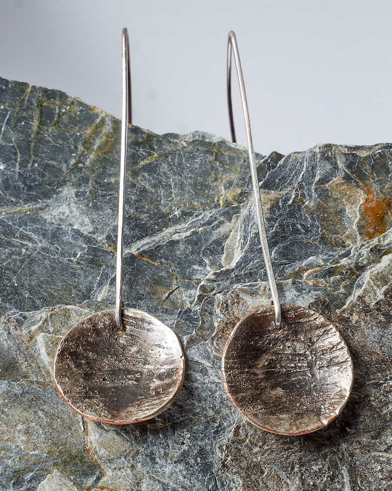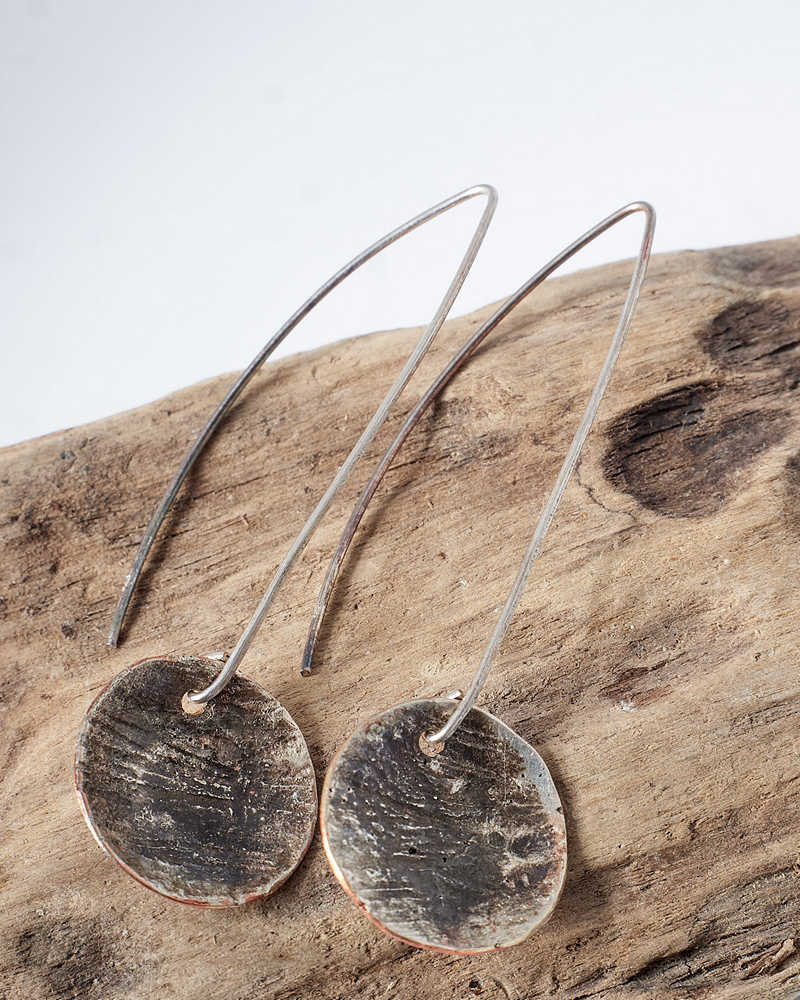 Hand-textured copper disc earrings compliment any outfit or occasion.